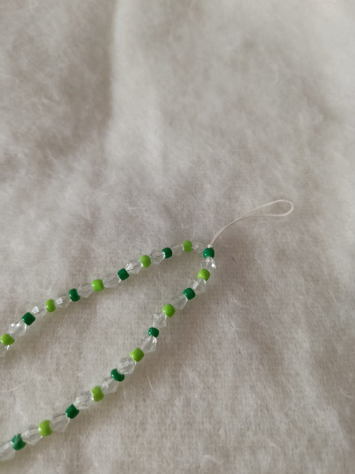 Renkli yeşil boncuklardan oluşan, minimalist bohem tarzda telefon aksesuarı , günlük kullanıma uygundur.