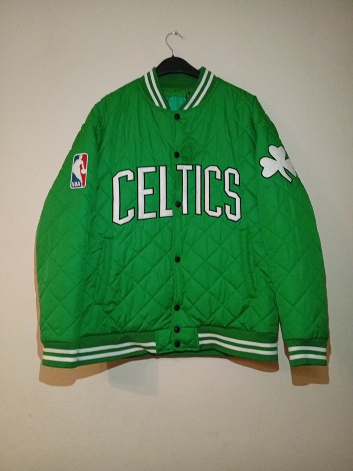 NBA Boston Celtics tasarımlı, yeşil renk kapitone erkek mont. Önü çıtçıt düğmeli, ribanalı yaka ve etek ucu sayesinde rüzgar geçirmez yapıdadır. Sol kolda NBA logosu, sağ kolda Celtics amblemi bulunmaktadır.Az kullanılmıştır, yırtık, leke, deformasyon yoktur. İçi temiz, dolgusu diri, çok şık ve spor bir modeldir. M-L Beden, Sipariş vermeden önce ölçü isteyebilirsiniz.