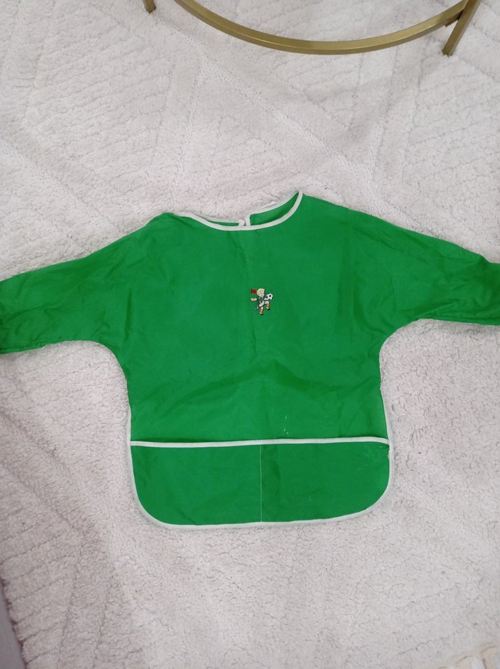 uzun kollu yeşil boya önlüğü. ana sınıfı 1 ve 2. sınıf çocukları için uygun
