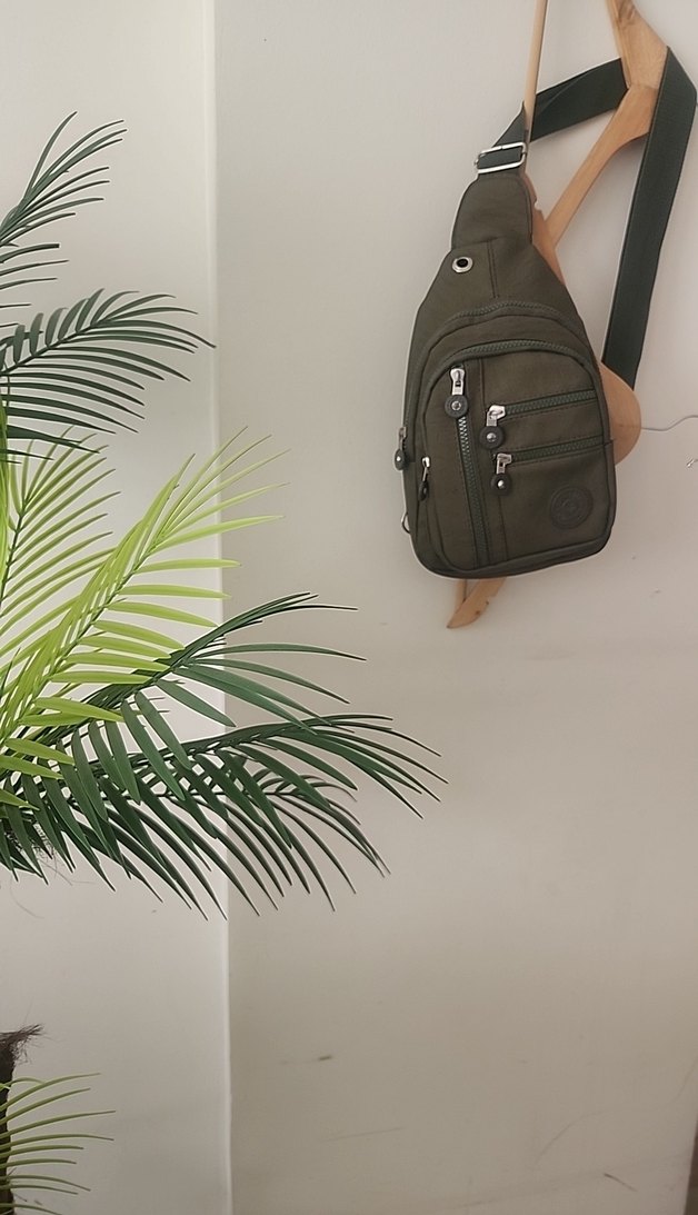 Diger çapraz çanta, yeşil renkte, çoklu fermuarlı cepler ve tokalı detaylara sahiptir. Günlük ve sokak stiline uygundur. parmak ucuyla gösterdiğim yerde sorunu vardır görselde mevcut inceleyin lütfen