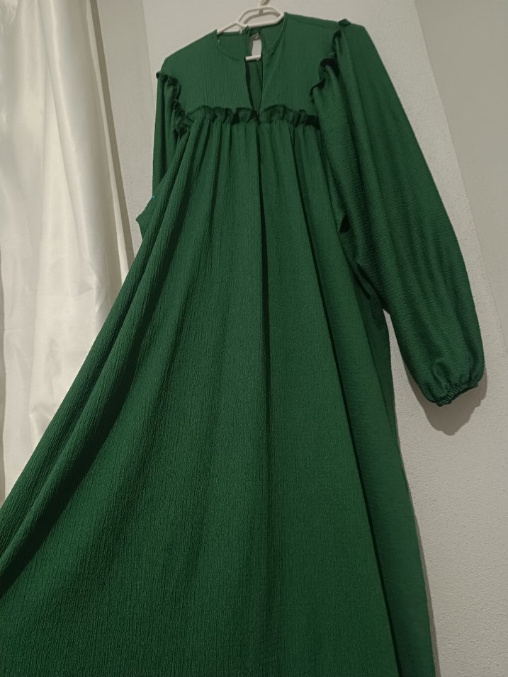 Zümrüt yeşili Tesettür Elbise Mevsimlik bi kaç defa giyildi Küçük bir fermuar detayı eklendi terzide. karpuz Dökümlü kol , lastikli bileğe sahip
