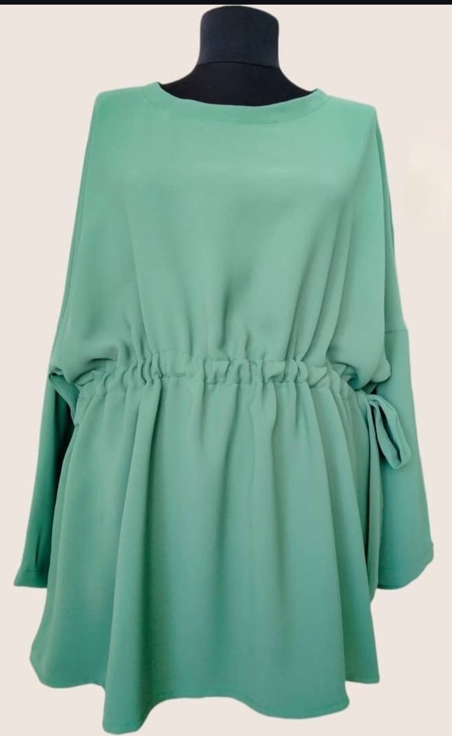 Salaş kesim, drapeli pastel yeşil kısa tunik. Yuvarlak yaka ve uzun kollu, bel kısmı büzgülü rahat ve modern tasarım. Günlük kullanıma uygun. İç göstermeyen Yazlık kumaş Özel dikimdir.