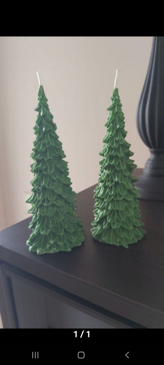 Detaylı yaprak dokusuna sahip, çam ağacı şeklinde tekli mum
