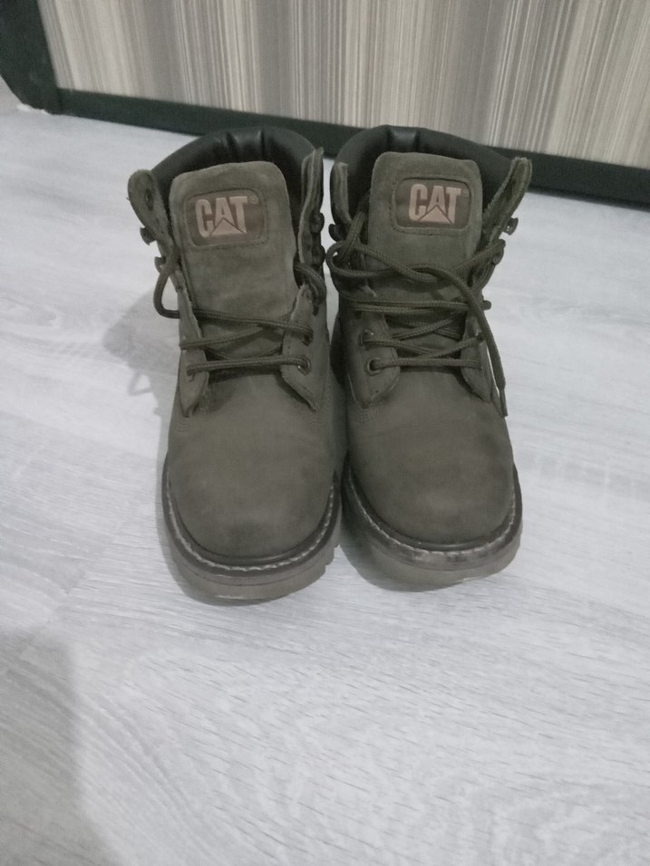 yesil CAT kadın botları, dolgu topuklu ve tokalı detaylı, günlük rahat sokak stili için uygun kauçuk malzemeden yapılmıştır. altında kusuru car c harfi yok sadece