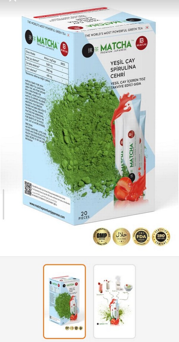 20 adetlik pakette yeşil çay ve spirulina içeren toz takviye gıda. Sağlıklı destek sağlar. macha gerçekten iyi kullanırsan zayıflarsın
