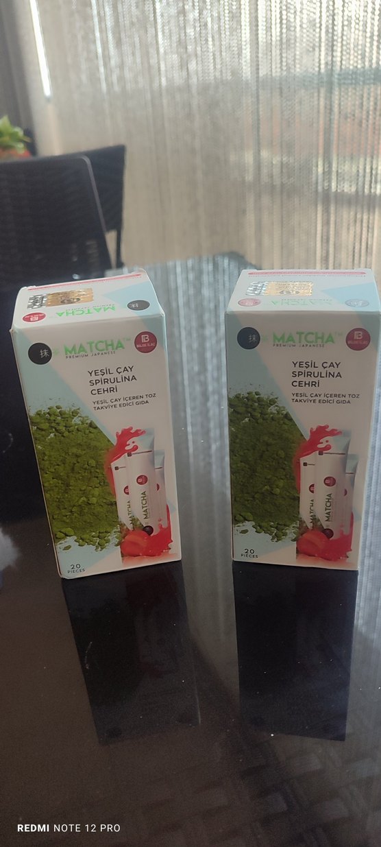 Yeşil çay, spirulina ve matcha özü içeren, doğal antioksidan desteği sağlayan toz. 20 adet poşet halinde kutuda.