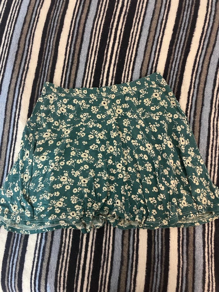 Yeşil Çiçek Desenli Fırfırlı Şort Etek