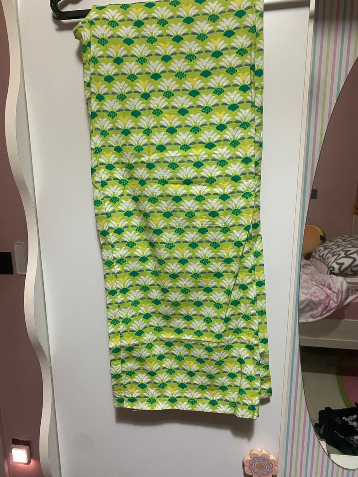 Uzun boy, çiçek desenli yazlık kız çocuk pantolon.ürün hiç kullanılmadı sadece hediye olduğu için etiketi mevcut değildir.