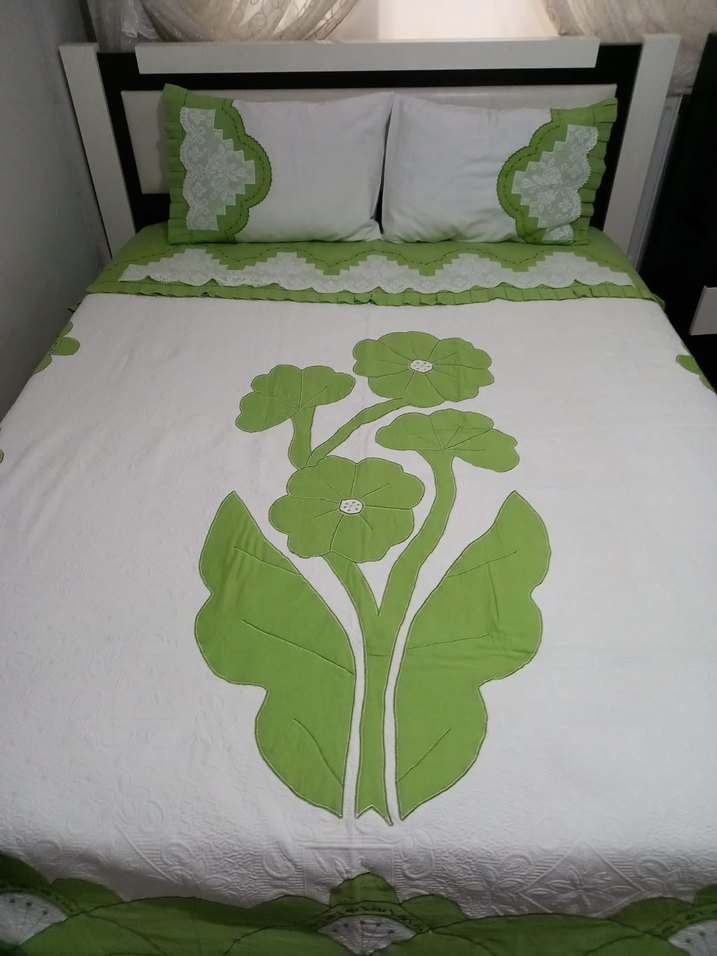 beyaz zemin üzerinde açık yeşil çiçek desenine sahiptir ve uyumlu yastık kılıfları ile tamamlanmıştır. Çift kişilik Pike - çarşaf - 2 yastık kılıfından oluşan pike takımıdır
