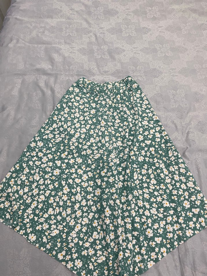 Yeşil çiçek desenli, salaş kesim etek hiçbir kusuru yoktur S bedendir
