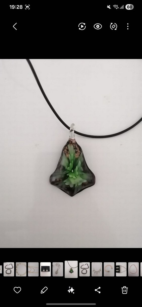 Günlük kullanıma uygun, minimal siyah ip üzerinde koyu yeşil çiçek desenli boncuklu kısa kolye. Bohem tarzını yansıtır.
