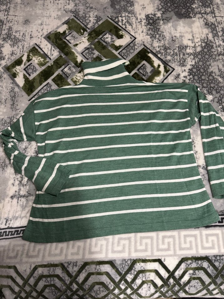 Yeşil çizgili, boğazlı ve uzun kollu triko kazak, rahat kesim Hiç deformesi yoktur