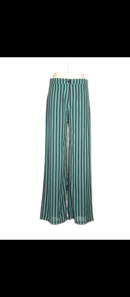 Yüksek Bel etiketi üzerinde duruyor Yeşil Çizgili Bol Paça Kumaş Pantolon kendinden desenli Geniş Paça Ölçüler Bel: 39cm, Uzunluk: 112cm