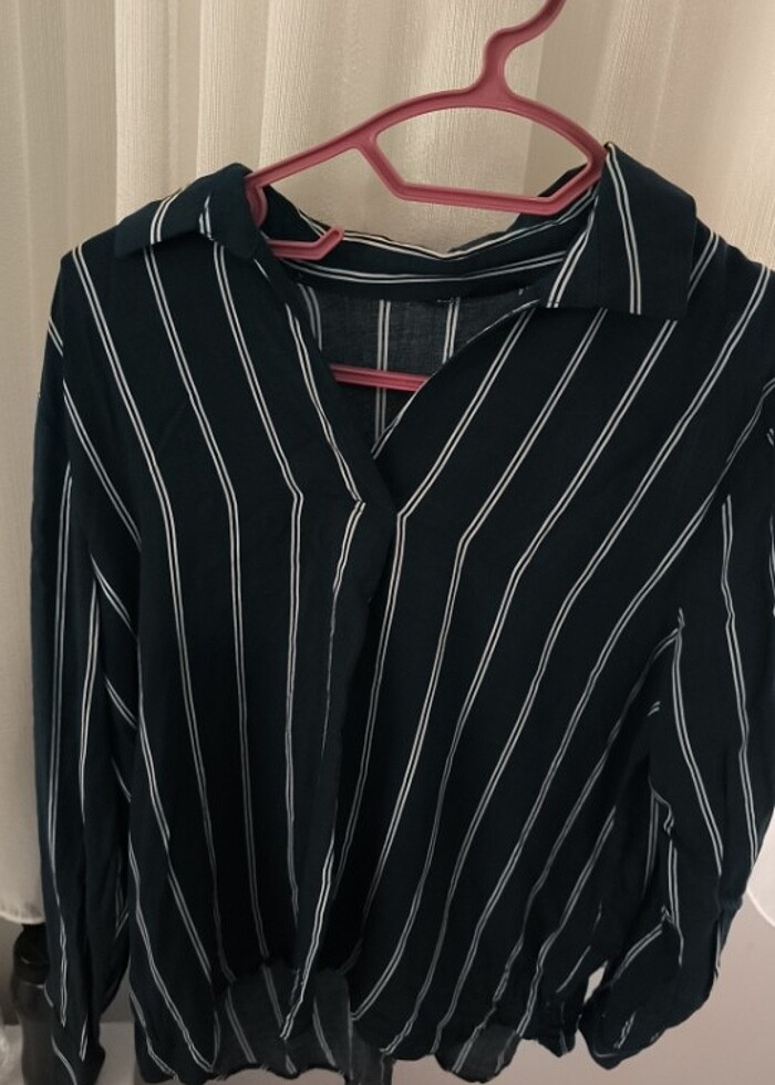Yeşil çizgili düğmesiz gömlek