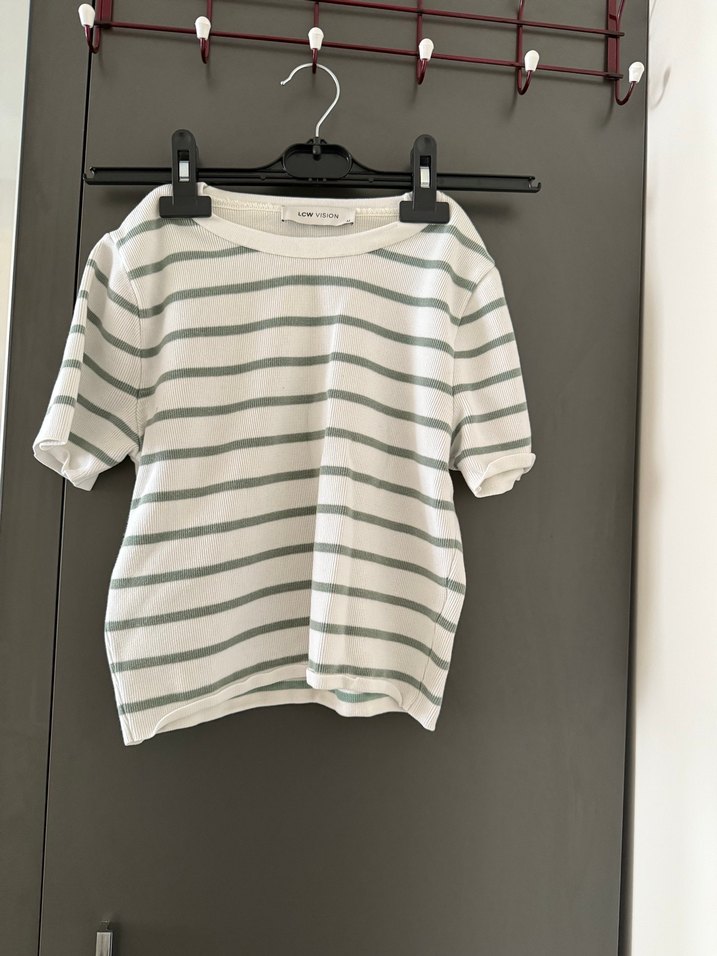 Yeşil Çizgili Kadın Kısa Kollu Tişört