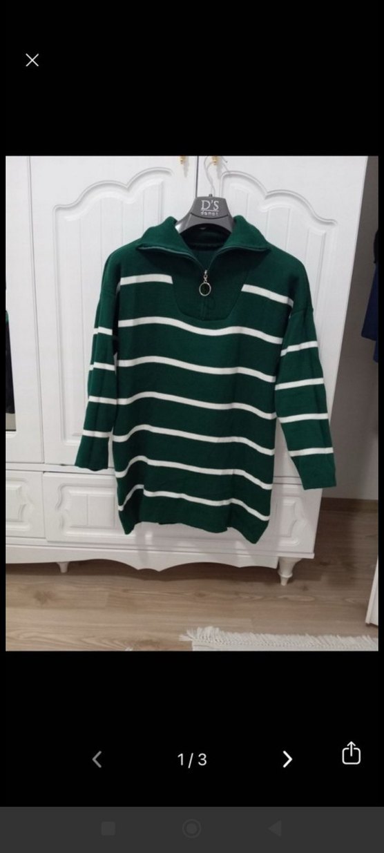 Yeşil çizgili, uzun kollu, fermuarlı bisiklet yaka ve bol kesim triko sweatshirt. Yumuşak ve sıcak kumaştan örülmüştür, günlük sokak stili için uygundur.