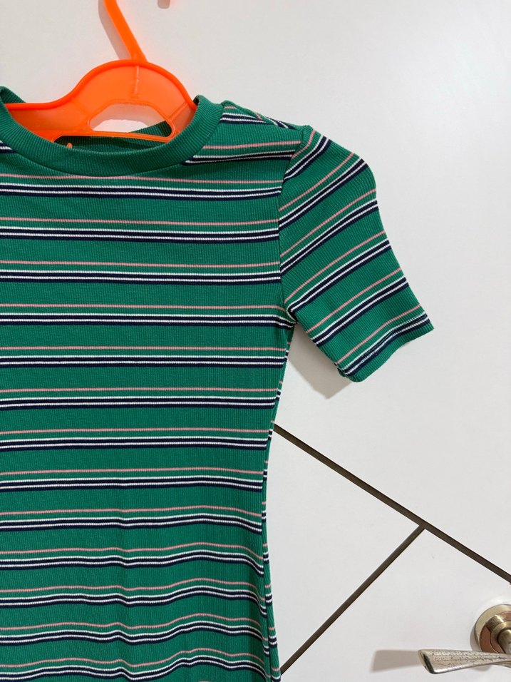Yeşil Çizgili Kısa Kollu Hamile Elbisesi