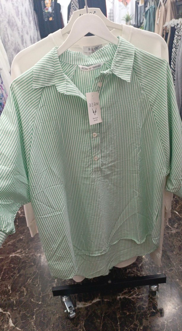 Yeşil Çizgili Pamuklu Kadın Gömlek