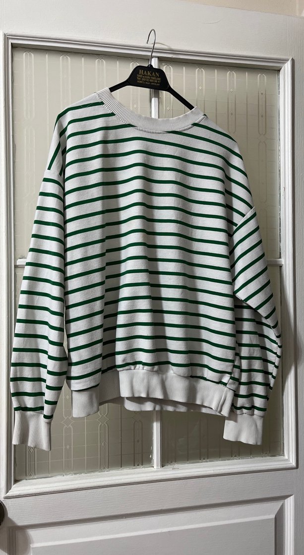 Yeşil Çizgili Pamuklu Kadın Sweatshirt