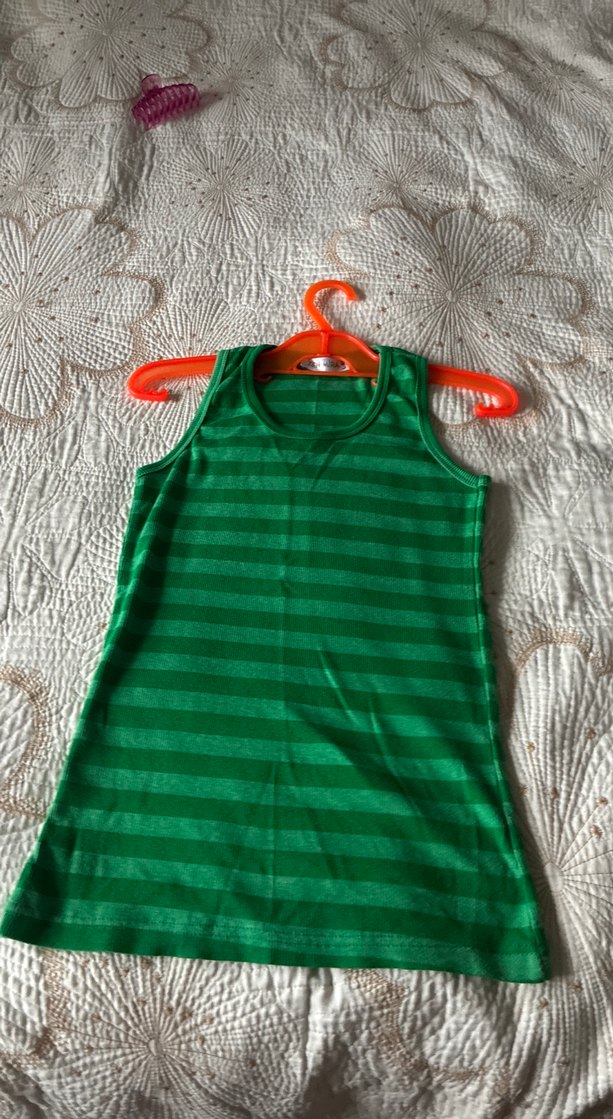 Renkli yeşil sporcu atleti, ince yatay çizgiler ve kolsuz tasarıma sahiptir, kat kat giymek için uygundur.