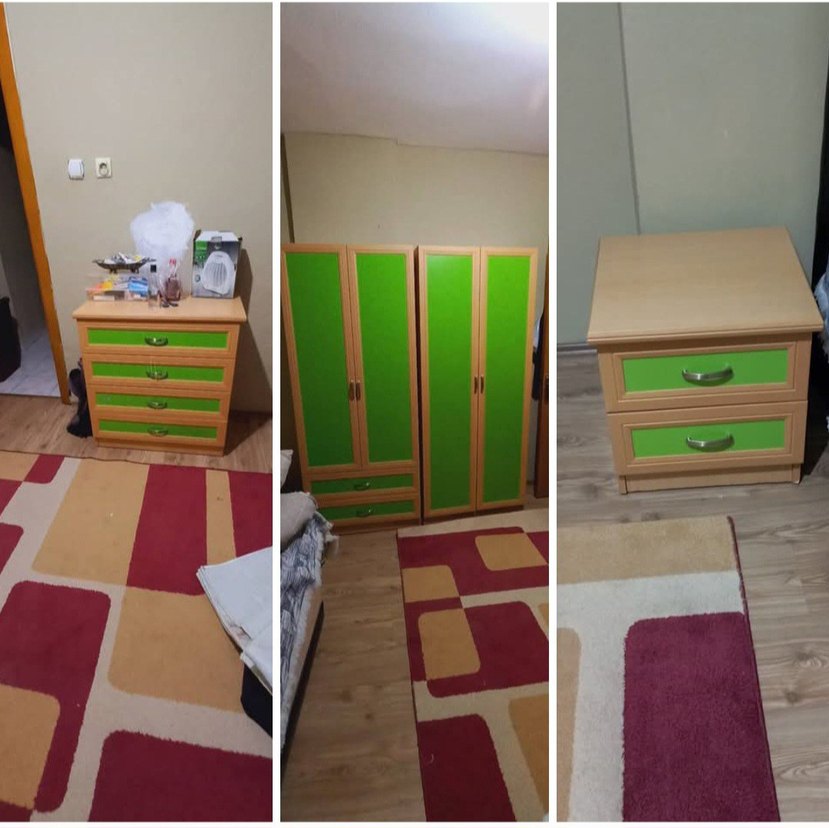 Yeşil Çocuk Dolabı ve Komodin Seti