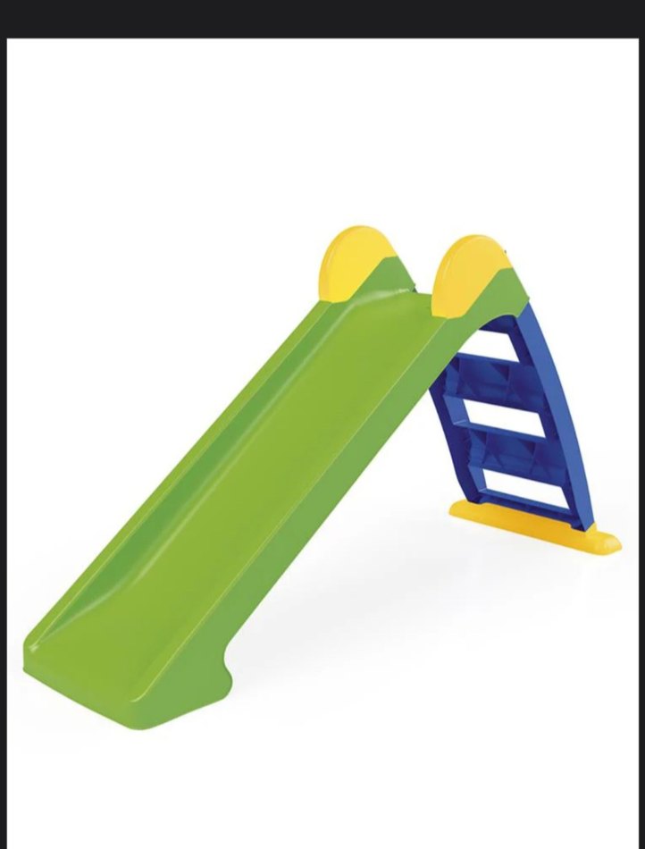 Çocuklar için açık yeşil kaydırak, mavi basamaklar ve sarı tutacaklarla dış mekan oyunları için uygundur. ürün kutusuyla duruyo açılmadı