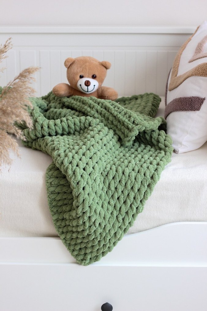 Renkli yeşil örgü çocuk battaniyesi, istenildiği renge göre sipariş alınır