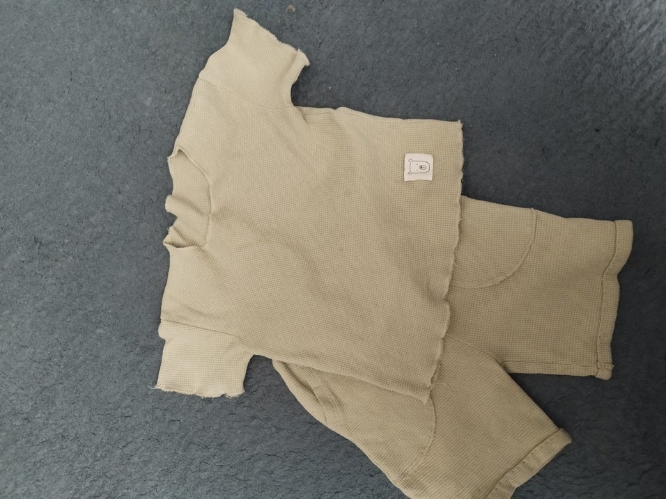 yeşil renkli, yumuşak dokulu çocuk tişörtü, sade tasarımlı ve küçük bir dekoratif etikete sahip. Günlük kullanım için rahatlık sağlar.