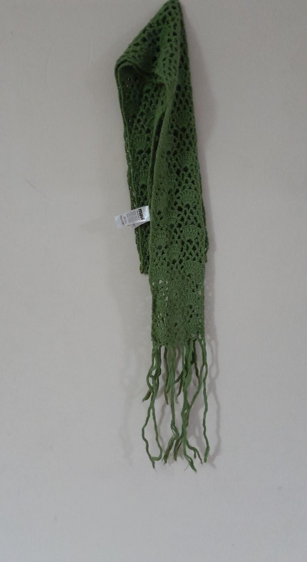 Yeşil Dantel Detaylı Örgü Bohem Şal