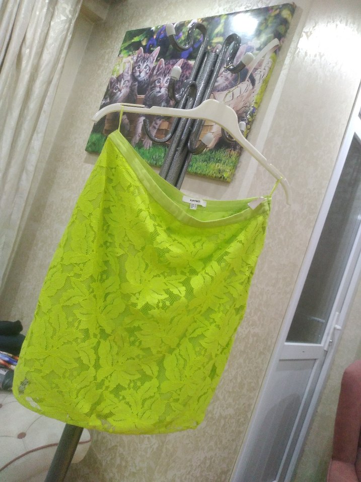 Yeşil renkli, dantel detaylı, baskılı sentetik kumaştan yapılmış kısa ve dar kesim etek sokak stili için uygundur 38 /40 uyumlu.