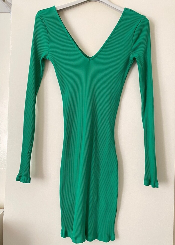 Yeşil dar v yaka elbise
