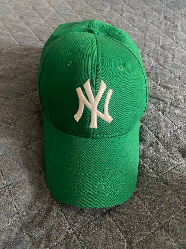 Koyu yeşil renkte, beyaz logolu sentetik kumaş kadın spor şapka. Rahat ve şık athleisure tarzı için ideal.