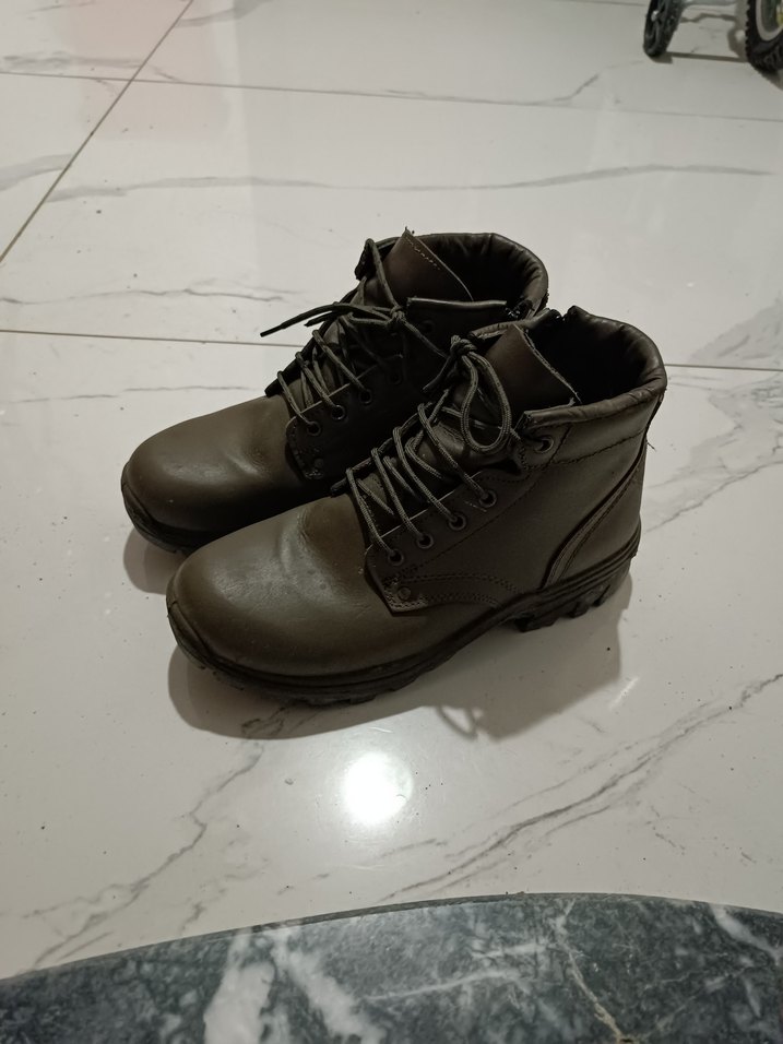 yeşil deri erkek botlar, sade tasarımlı ve tokalı detaylara sahip, günlük kullanıma ve sokak stiline uygundur.