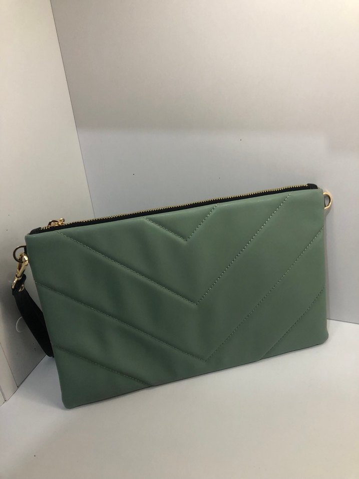 Yeşil deri ve fermuarlı, minimalist tarzda kadın çantası. Günlük kullanıma uygun, sade ve şık tasarım. Doğan çanta markası güzel bir çanta