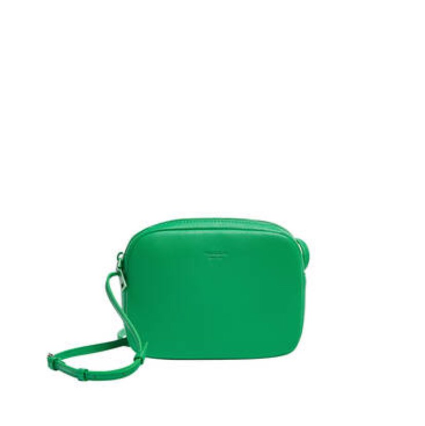 Yeşil deri, kemerli tasarıma sahip kadın bel çantası, minimalist ve renkli. Günlük sokak stiline uygun, desensiz ve sade görünümlü.