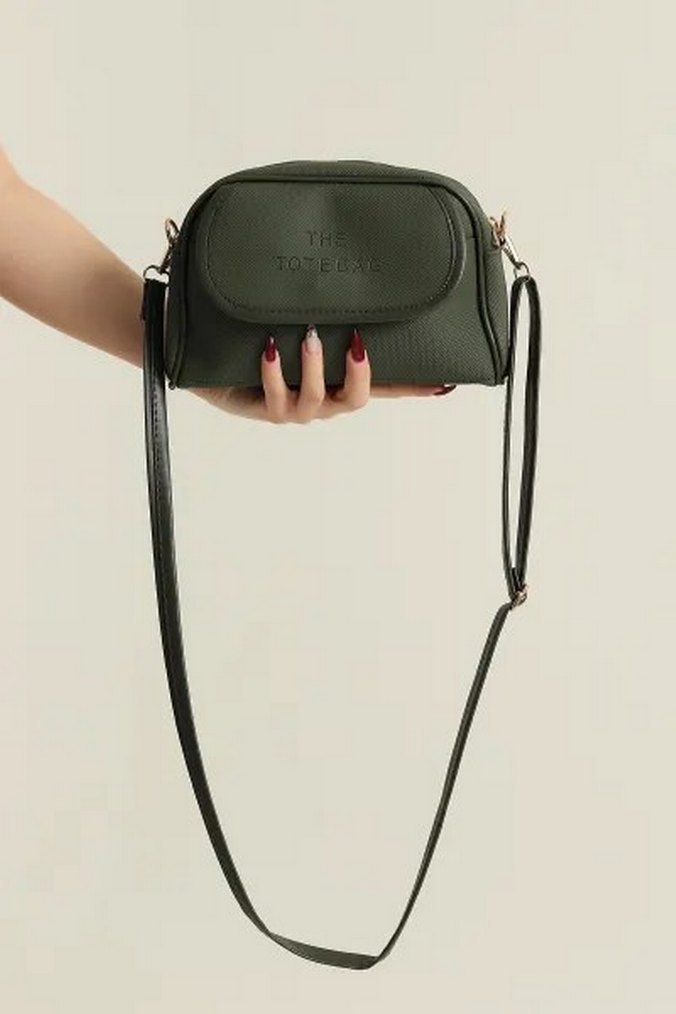 yesil deri kadın çanta, tokalı detaylı ve desen içermeyen minimalist tarzda, trend sokak modasına uygun.