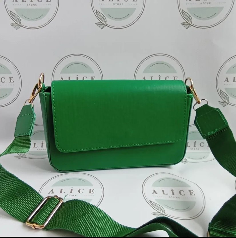 Tokalı askıya sahip yeşil deri kadın çantası, minimalist ve modern klasik tarzda. Günlük kullanım için uygundur.