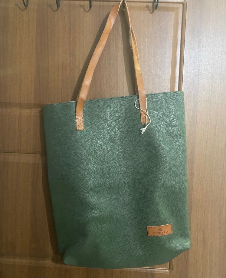 Parlak yeşil deri kadın çantası, hacimi baya geniş boyu da uzun. hiç kullanılmadı etiketi yırtıldığı için etiketli koymadım. üstte duruşuve boyutu için mesaj atabilirsiniz.