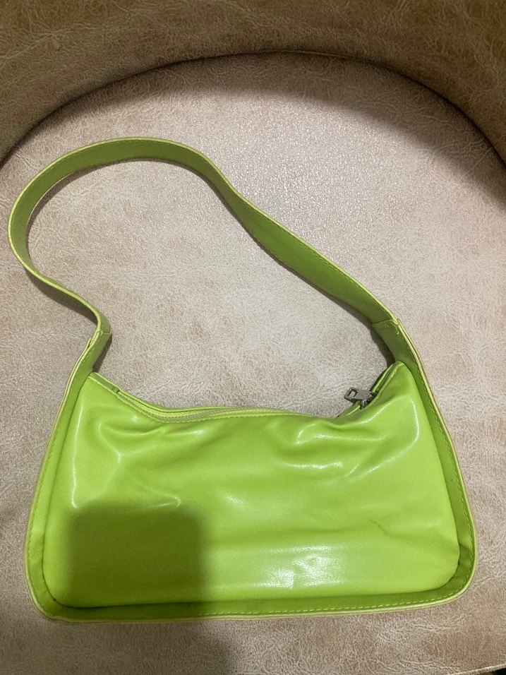 Parlak yeşil deri omuz çantası, tokalı detayları ile minimalist ve trend günlük stil için uygun.