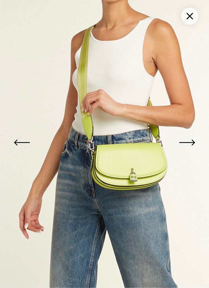 Michael Kors marka, Açık yeşil deri kemerli kadın çanta, bağlama desenli, günlük kullanım için uygun kompakt tasarım. DEFOSU YOKTUR