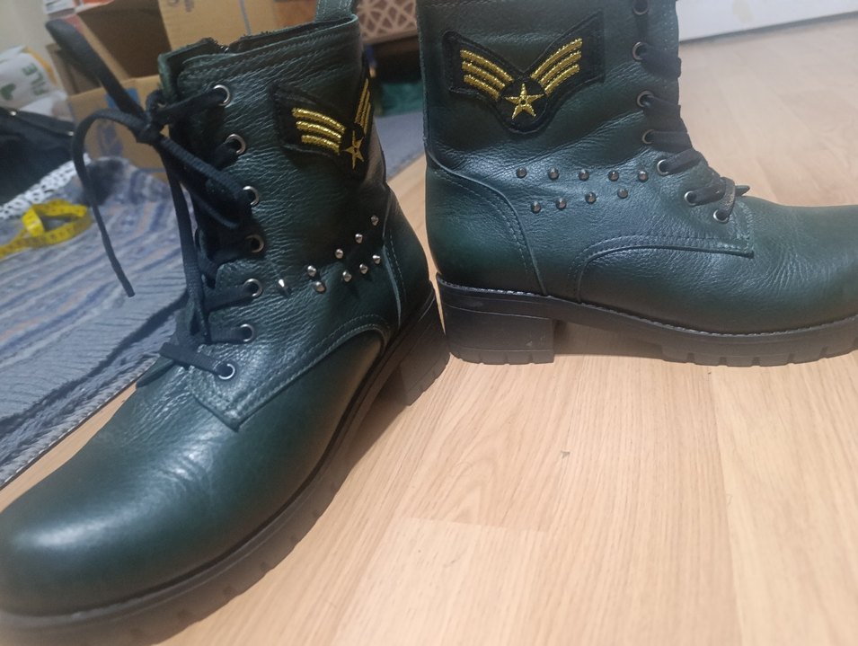 Yeşil Deri Rock Punk Tokalı Deri Botlar