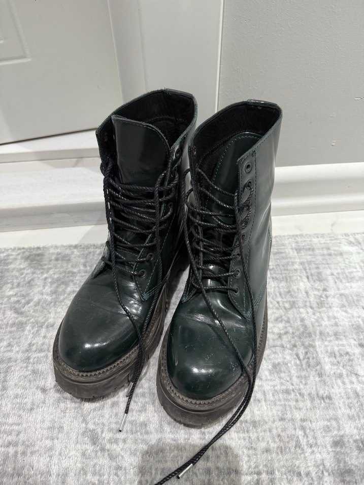 Yeşil deri, tokalı ve bağcıklı botlar. ⚡Sayılı kullanıldı kusursuz.