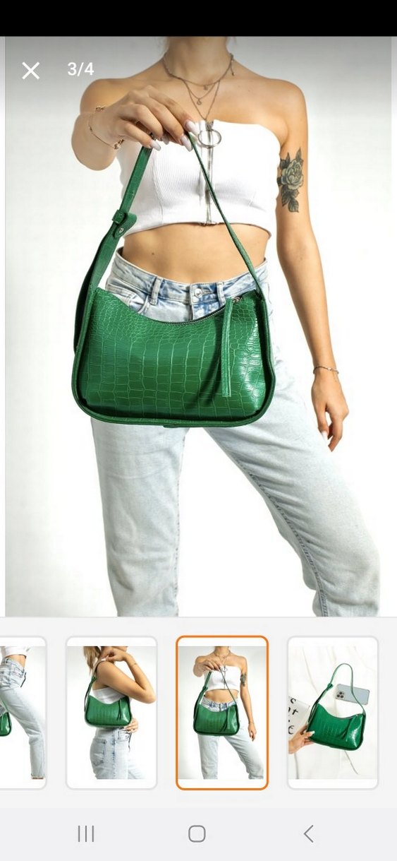 Parlak yeşil deri, yılan desenli kadın çanta. Tokalı askısı ve çağdaş minimalist tarzıyla günlük kullanıma uygundur.