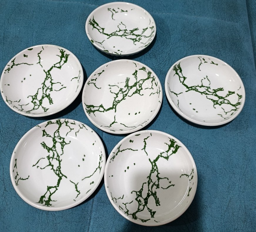 Yüzeyinde koyu yeşil mermer desenleri Her parça yiyecek sunumu için uygun, 13cm yuvarlak ️6adet porselen tabaklar