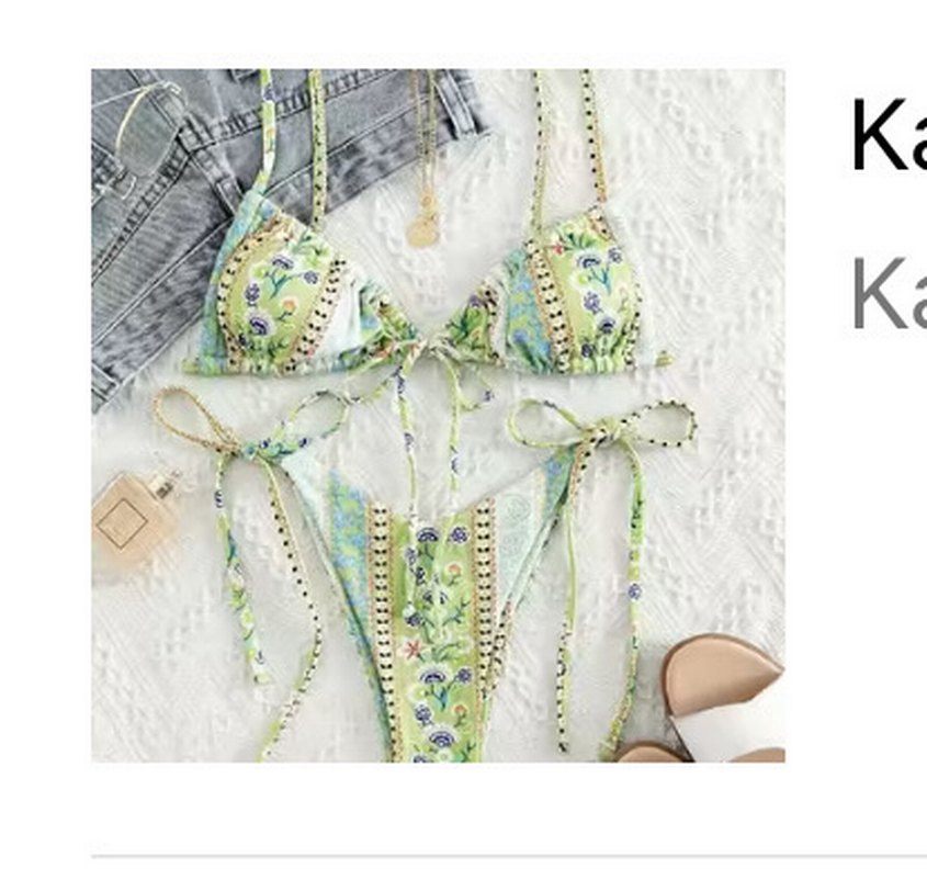 Yeşil desenli bikini takımı