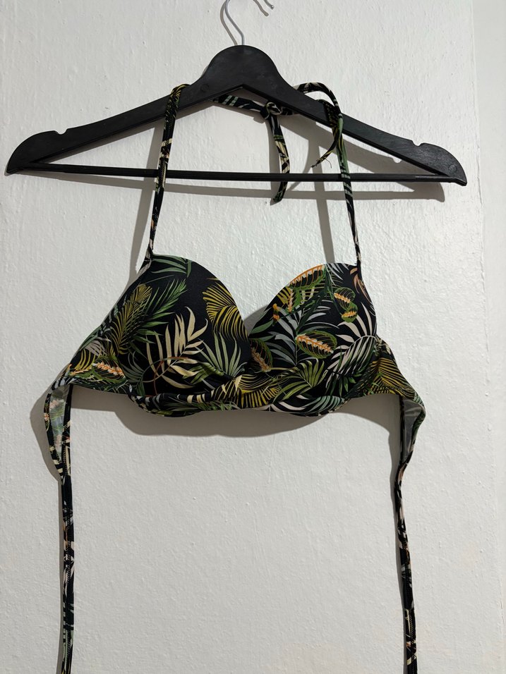 Fit kesim, yeşil baskılı desene sahip, askılı ve destekli bohem tarzda bikini üstü. Yeni gibi etiketi yok yalnızca.