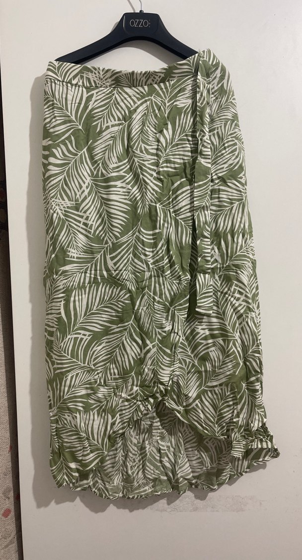 Yeşil yaprak desenli ve, dökümlü ve bol kesim uzun etek, yumuşak pamuk kumaştan üretilmiştir. Günlük kullanıma uygun bohem tarzda .2 kez giyildi