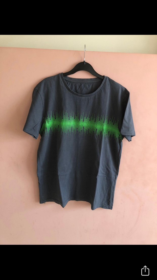 kısa kollu, yuvarlak yaka erkek tişörtü. Yeşil baskılı, sentetik kumaştan, rahat kesim ve günlük kullanım için uygun.Sayılı giyilmiş olup, küçük kalmıştır.Boy uzunluğu 67 cm, koltuk altından göğüs ölçüsü 51 cm dir fotoğraflarda görebilirsiniz.Hiçbir sorun yoktur.Rengi fümedir.