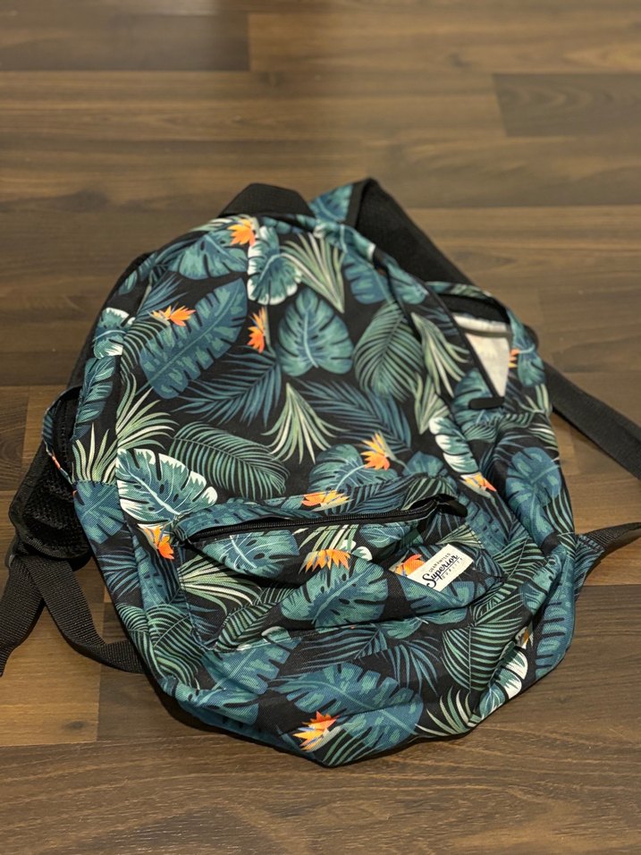 Koyu yeşil desenli sentetik kumaştan, fermuarlı kadın sırt çantası. Sokak stiline uygun bohem desenlerle günlük kullanıma uygundur.