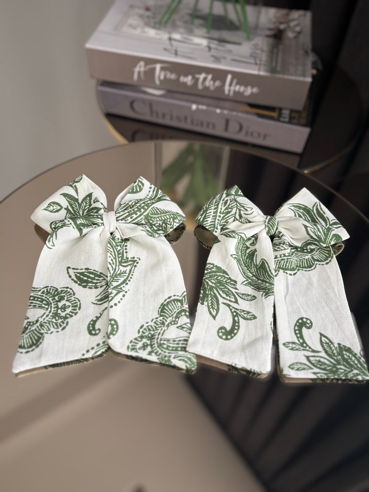 Hafif yeşil yaprak desenli, yumuşak kumaştan yapılmış, klasik tarzda yeşil desenli mutfak havlusu seti.
